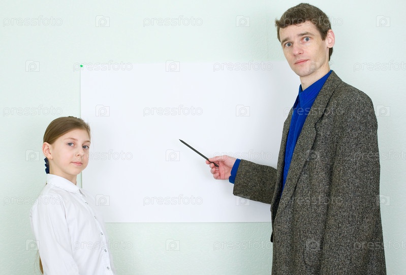Репетитор в костюме и его маленькая школьница