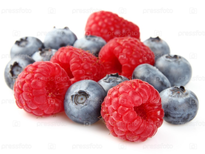 Ягоды черники и малины, изолированные на белом фоне