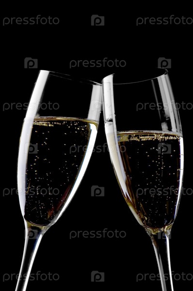 Объект на черном - бокалы с шампанским вблизи