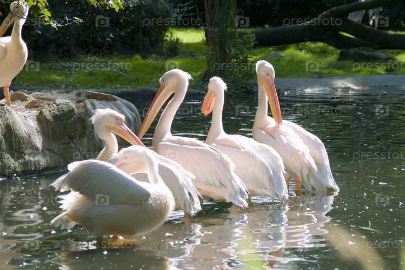 Стадо пеликанов в воде