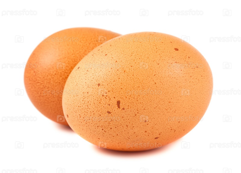 Два коричневых яйца на белом фоне