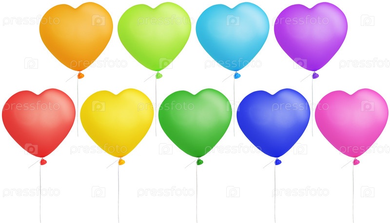 Набор красочных воздушных шаров в форме сердца, изолированно на белом