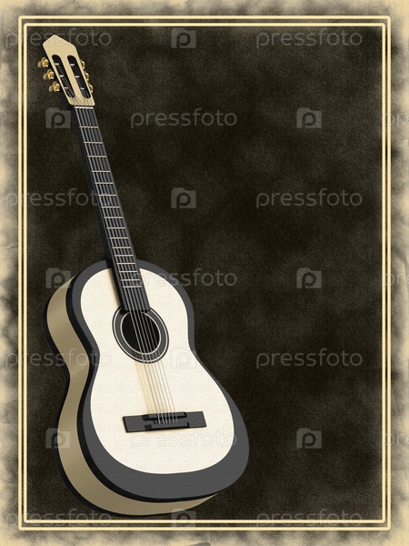 Акустическая гитара на черном фоне в рамке