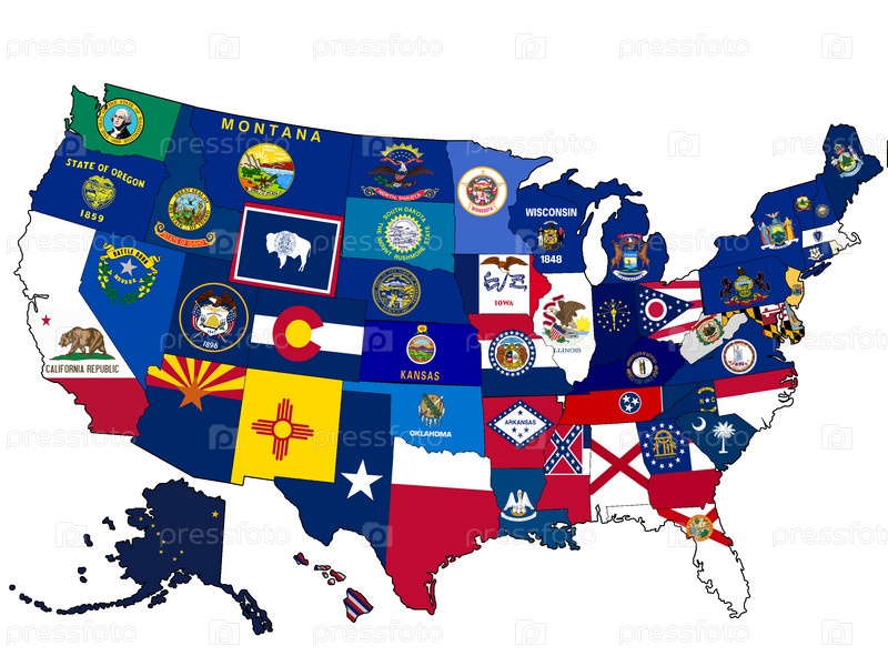 Карта США с гербами штатов