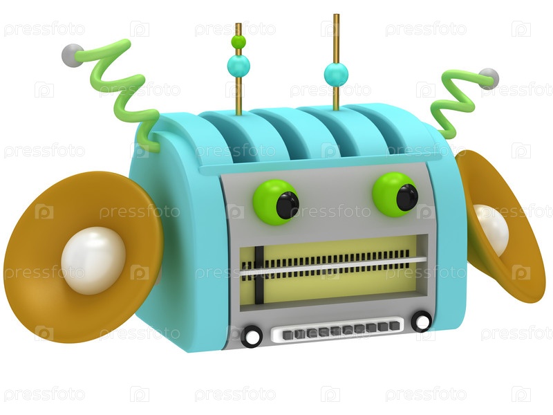 Старинный транзистор с глазами на белом фоне