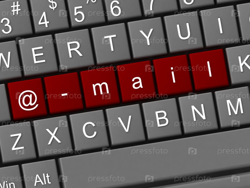 Серая компьютерная клавиатура с надписью @-mail на красных кнопках