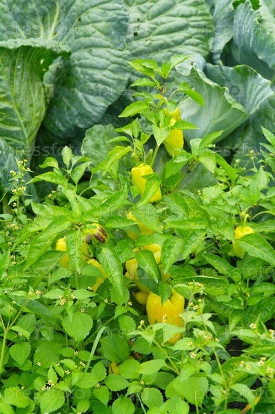 Капуста и перец на грядке