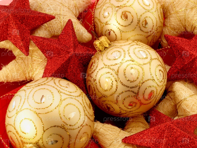 Елочные игрушки желтого цвета с золотистым орнаментом