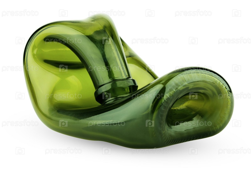 Изогнутая зеленая, стеклянная бутылка