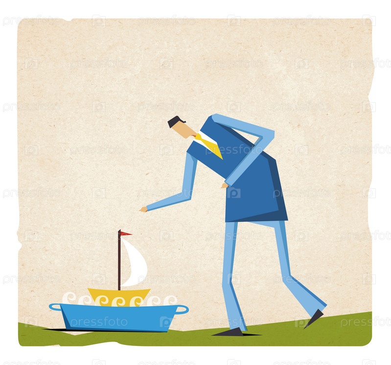 Человек с игрушечным корабликом, иллюстрация на старой бумаге