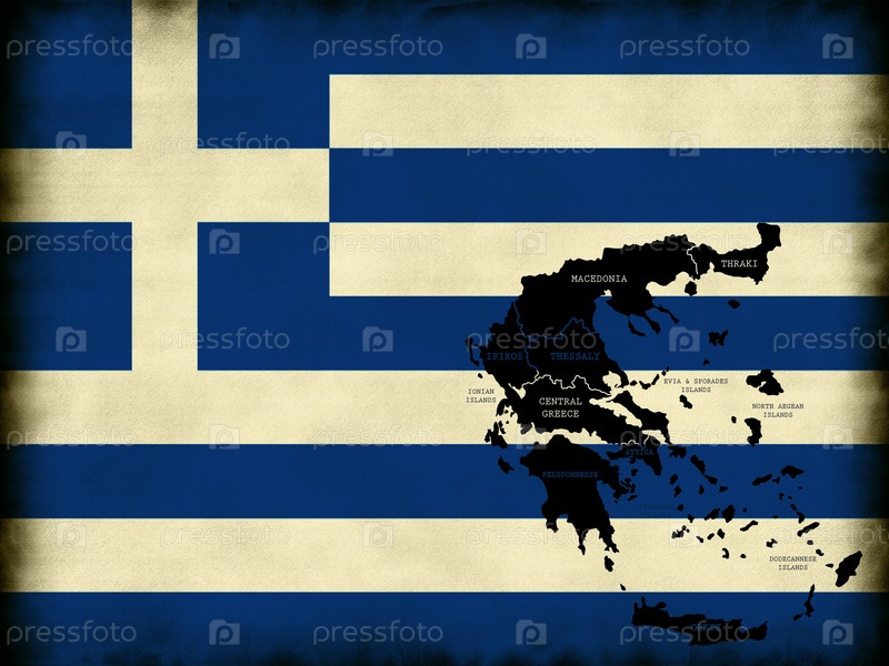 Контурная карта Греции на фоне государственного флага