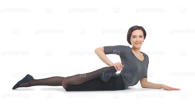 Гибкая молодая женщина на белом фоне