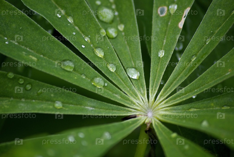 Зеленое растение с каплями воды крупным планом