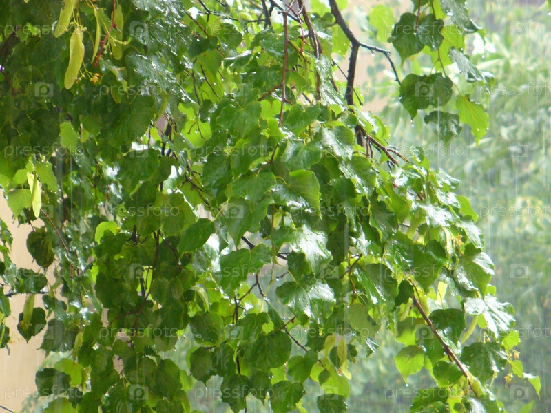 Листья липы под дождем