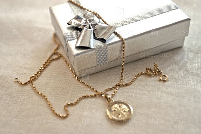 Золотой круглый кулон с цепочкой и подарочная коробка
