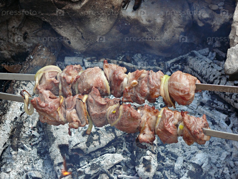 Шиш-кебаб; мясо на жарку; огонь; пепел; мука; огонь