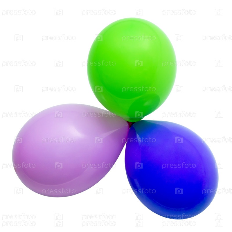 Три воздушных разноцветных шарика, изолированных на белом фоне