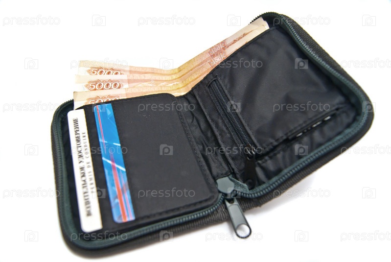 Кошелек с деньгами на белом фоне