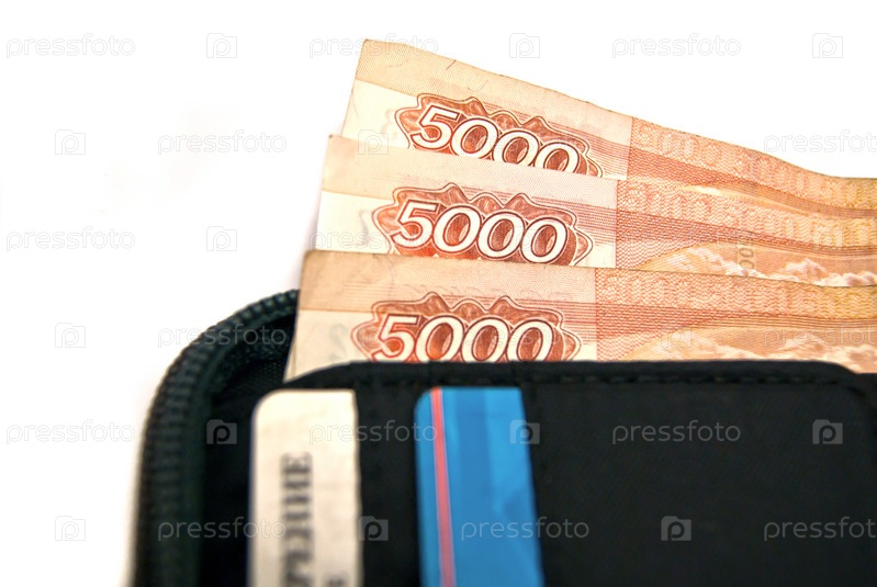 Кошелек с деньгами на белом фоне