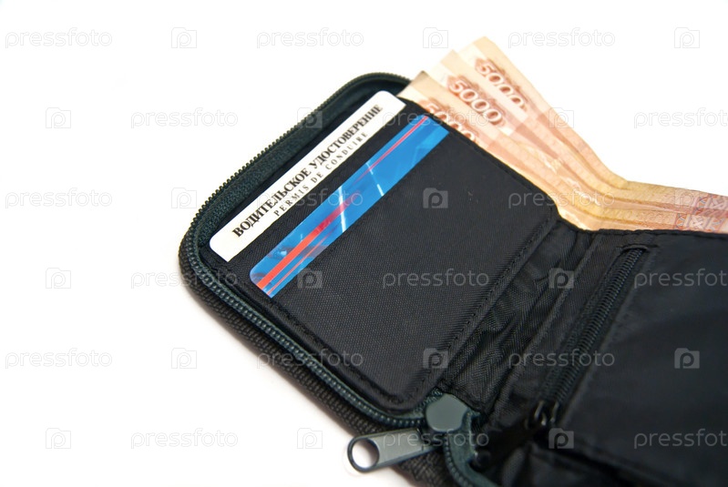 Кошелек с деньгами на белом фоне