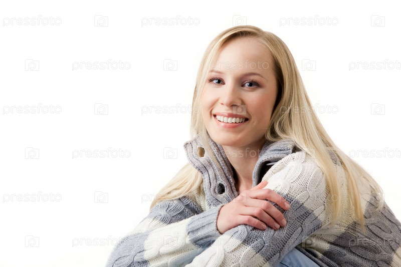Портрет блондинки, смотрящей в камеру и смеющейся