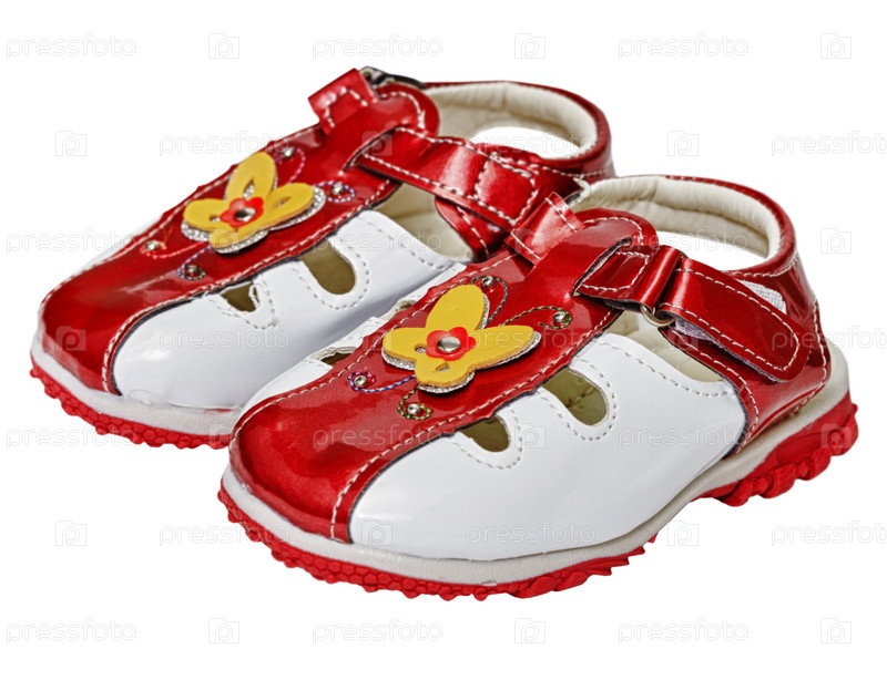 Детская кожаная обувь на белом фоне