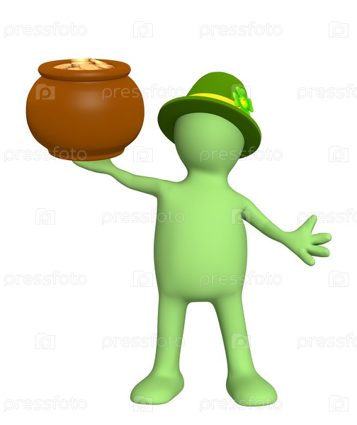 Человек-лепрекон, держащий горшок с золотыми монетами