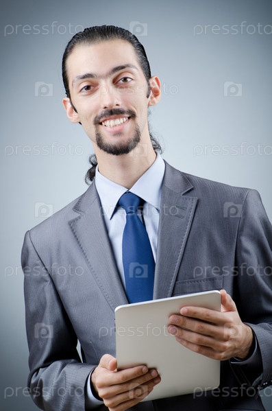 Молодой бизнесмен на сером фоне