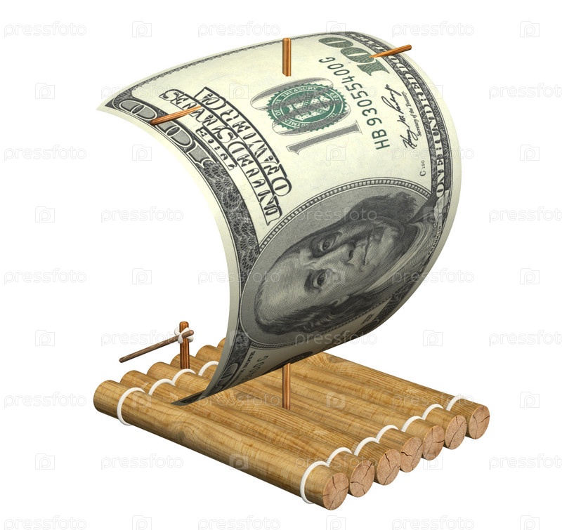 Плот с парусом из долларовой купюры