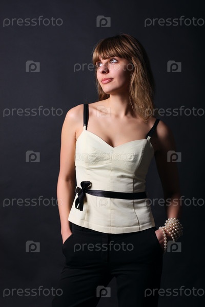 Девушка в студии на темном фоне
