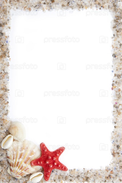 Вертикальная рамка для фотографии с ракушками и морской звездой в левом нижнем углу