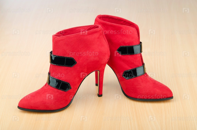 Женские ботильоны на деревянном фоне