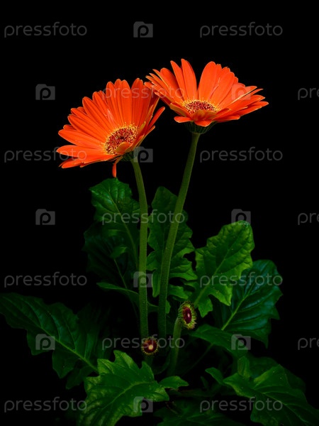 Оранжевые герберы на черном фоне