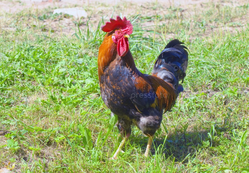 Петух на зеленой траве