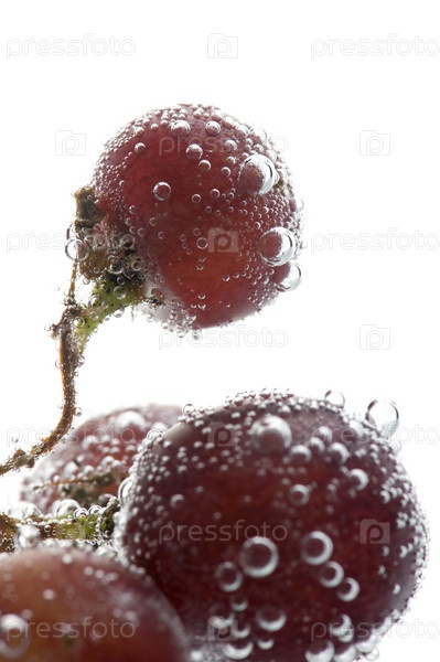 Объект на белом - красное виноград в воде ближе
