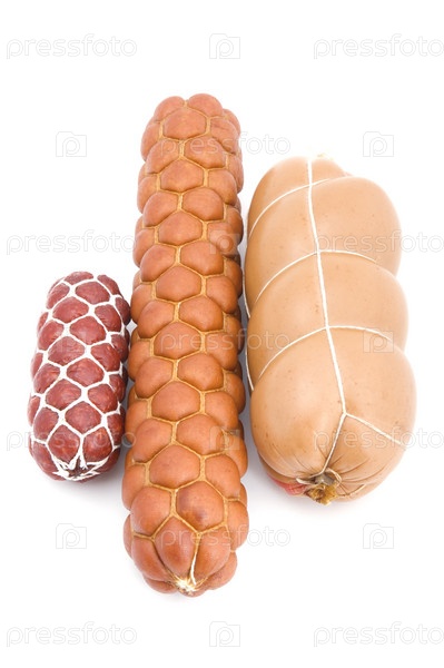 Object on белый - еда вареные колбасы