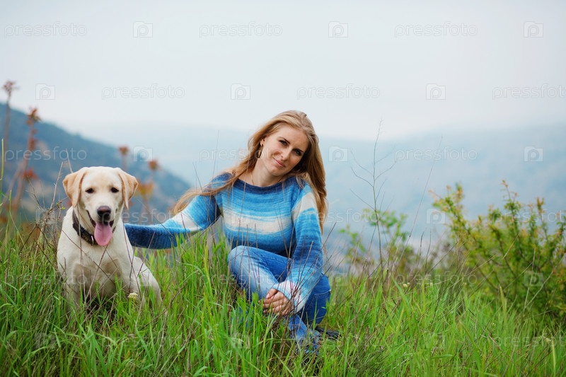 Красивая женщина с лабрадором на открытом воздухе