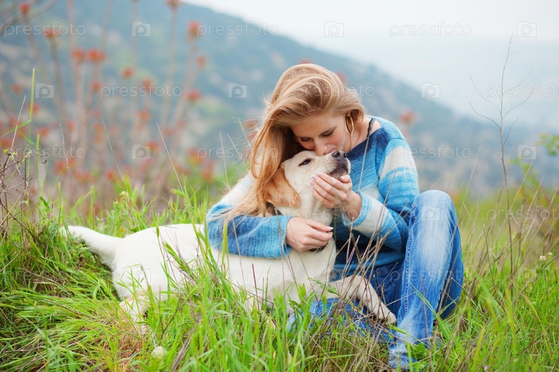 Красивая женщина с лабрадором на открытом воздухе