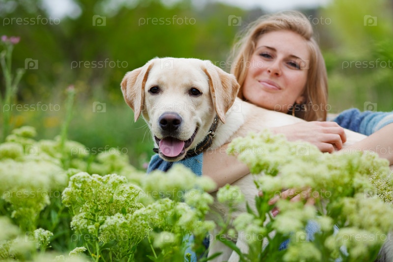 Красивая женщина с лабрадором на открытом воздухе