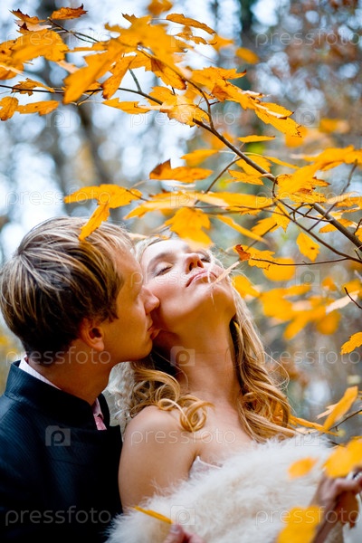 Жених с невестой в осеннем лесу