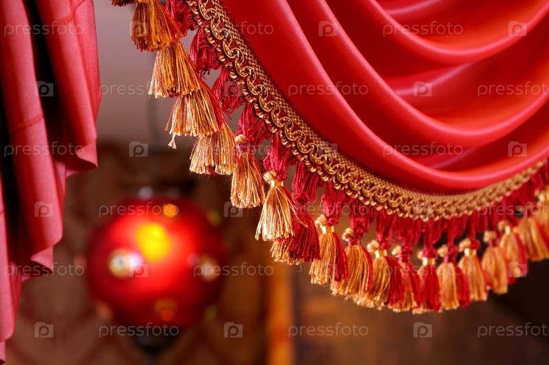 Фрагмент красной портье с кистями
