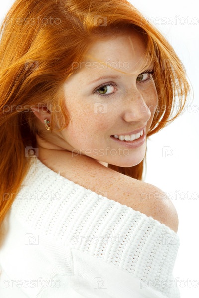 Портрет рыжеволосой девушки в белом свитере