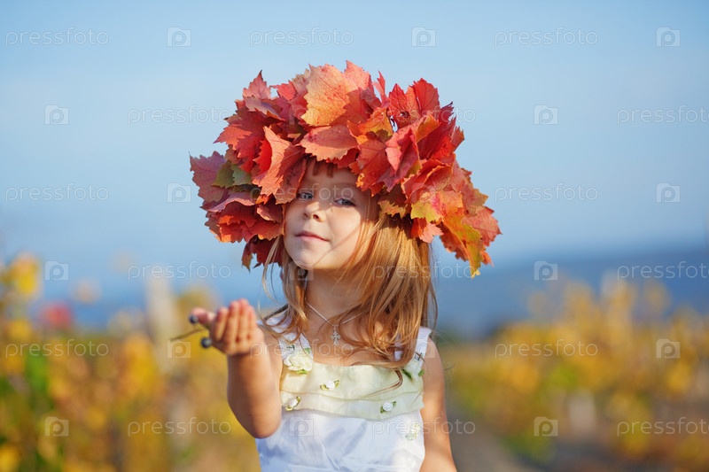 Симпатичная девочка в венке из осенних листьев