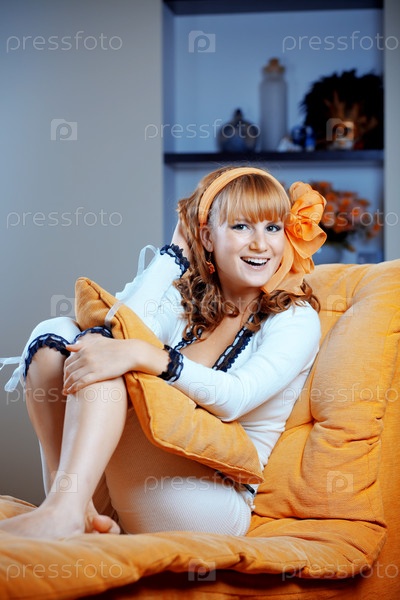 Симпатичная домохозяйка отдыхает дома на диване