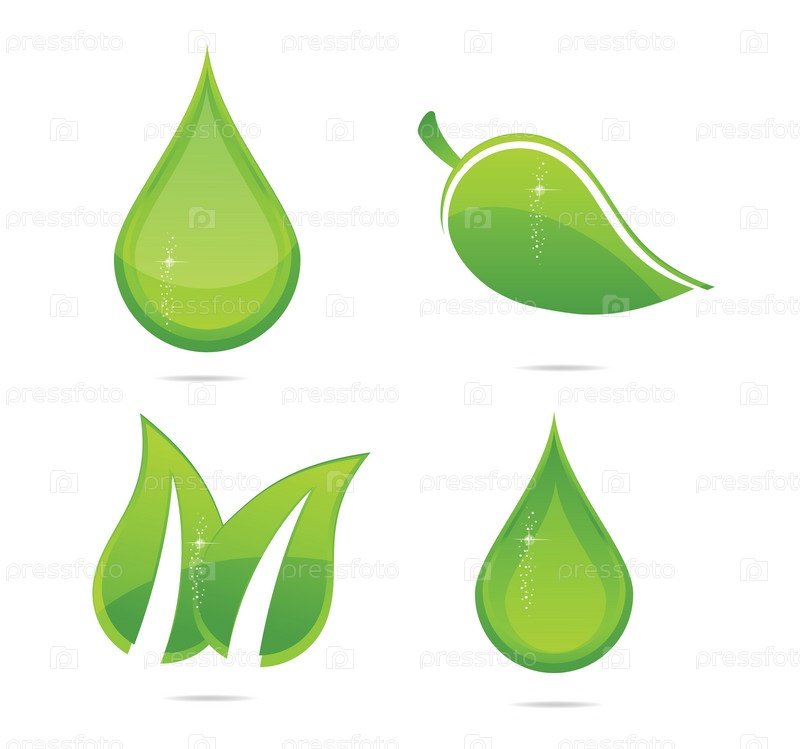 Четыре зеленых эко-знака, изолированных на белом фоне