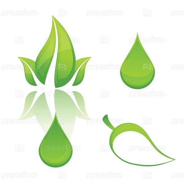 Четыре зеленых эко-знака, изолированных на белом фоне