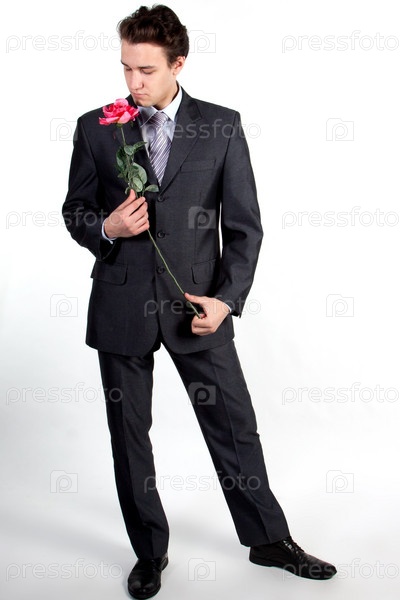 Бизнесмен с цветком на белом фоне