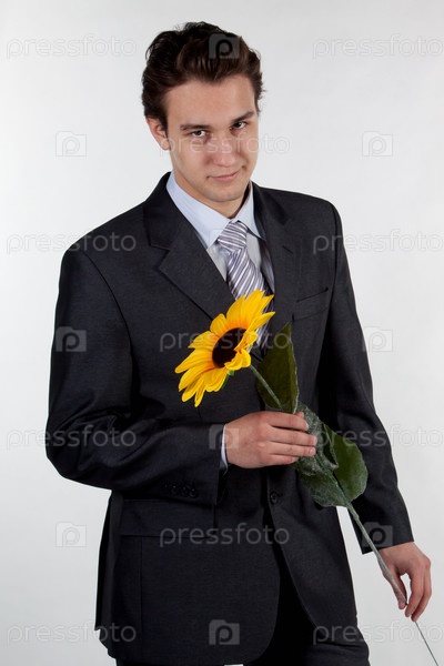 Бизнесмен с цветком на белом фоне