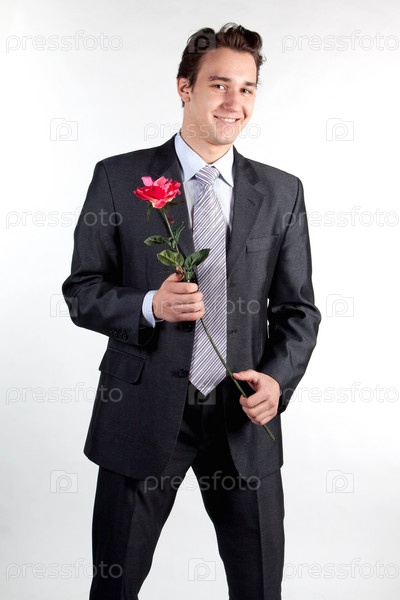 Бизнесмен с цветком на белом фоне