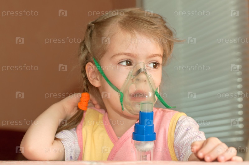 Маленькая девочка в защитной маске делает ингаляцию
